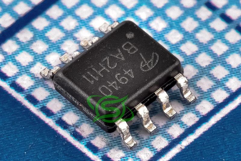 ترانزيستور AO4940 با بهرهگيري از فناوري پيشرفته ترنچ (Trench) طراحي شده که مقاومت روشن پايين (RDS(ON)) و بار گيت کم را ارائه ميدهد. اين قطعه شامل دو MOSFET بوده که ترکيبي فشرده و کارآمد براي سوئيچينگ و يکسوکننده همزمان در مبدلهاي DC-DC ايجاد ميکند. همچنين يک ديود شاتکي به صورت مجتمع و موازي با MOSFET يکسوکننده در آن تعبيه شده که موجب افزايش بازدهي ميشود. اين طراحي باعث بهينهسازي عملکرد در کاربردهاي تغذيه سوئيچينگ و کاهش تلفات توان ميشود.
