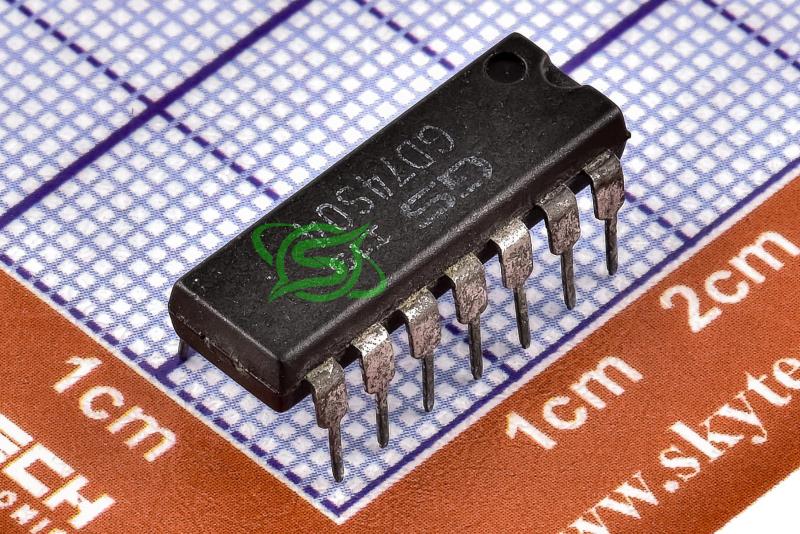 2. Technical specifications: Chip type: TTL (transistor-transistor logic) Number of gates: 6 Type of gates: NOT (inverter) Packaging: Typically DIP-14 (14 pins double row)
