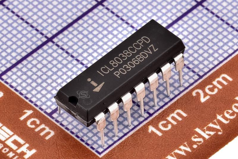 مولد شکل موج ICL8038 يک مدار مجتمع يکپارچه است که قادر به توليد شکل موج هاي سينوسي، مربعي، مثلثي، دندانه اي و پالسي با حداقل اجزاي خارجي با دقت بالا است. فرکانس (يا نرخ تکرار) را مي توان به صورت خارجي از 0.001 هرتز تا بيش از 300 کيلوهرتز با استفاده از مقاومت يا خازن انتخاب کرد و مدولاسيون فرکانس و جارو کردن را مي توان با ولتاژ خارجي انجام داد. ICL8038 با تکنولوژي پيشرفته يکپارچه، با استفاده از ديودهاي مانع شاتکي و مقاومت هاي لايه نازک ساخته شده است و خروجي در طيف وسيعي از تغييرات دما و عرضه پايدار است. اين دستگاه ها ممکن است با مدارهاي حلقه قفل فاز متصل شوند تا تغيير دما را به کمتر از 250ppm/oC کاهش دهند.