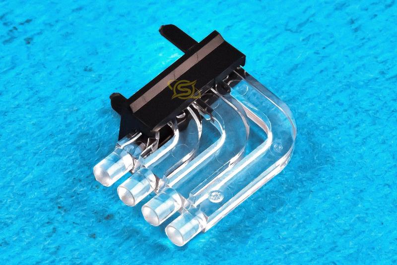 راهنماي نور براي استفاده از نوع 0805 CHIPLED يا انواع کوچکتر طراحي شده است و مي توان آن را به صورت نواري در ابعاد شبکه اي 5.08 ميلي متري نصب کرد. اين سيستم داراي يک ديافراگم براي جلوگيري از تابش است، به طوري که رنگ هاي مخلوط نيز امکان پذير است. صفحه نمايش محکم بودن راهنماي نور را تضمين مي کند و راهنما را از طريق دو بند فشاري روي برد مدار چاپي ثابت مي کند. طول A راهنماي نور از 2.8 تا 12.8 ميلي متر متغير است. به عنوان يک جايگزين با توجه به نمايشگر چهارگانه، مي توان قطعه را با همان کيفيت با صفحه نمايش تک، دوتايي يا سه تايي تا 40 برابر در ابعاد شبکه مربوطه داشت.