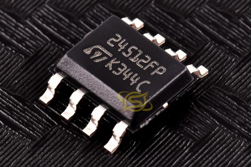 M24512E-F يک EEPROM (حافظه قابل برنامه ريزي با قابليت پاک کردن الکتريکي) سازگار با 512 کيلوبيت I²C است که به صورت 64 K x 8 بيت سازماندهي شده است. اين دستگاه مي تواند با ولتاژ تغذيه از 1.6 ولت تا 5.5 ولت با فرکانس ساعت 1 مگاهرتز (يا کمتر)، در محدوده دمايي -40 درجه سانتيگراد / +85 درجه سانتيگراد کار کند. M24512E-F سه رجيستر 8 بيتي را ارائه مي دهد. ثبت شناسه نوع دستگاه (DTI) براي هميشه در حالت فقط خواندني قفل شده است. ثبت آدرس دستگاه قابل تنظيم (CDA) به کاربر اجازه مي دهد تا از طريق نرم افزار، حداکثر هشت امکان آدرس فعال تراشه را پيکربندي کند. ثبت حفاظت از نوشتن نرم افزار (SWP) به کاربر اجازه مي دهد تا از طريق نرم افزار، آرايه حافظه جزئي يا کامل را بنويسد. علاوه بر اين، M24512E-F يک صفحه اضافي به نام صفحه شناسايي (128 بايت) ارائه مي دهد.