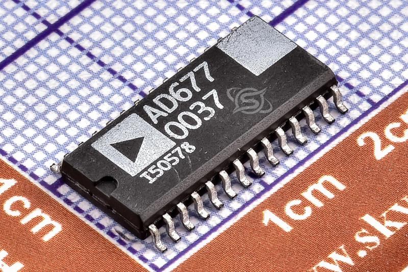 AD677 يک مبدل آنالوگ به ديجيتال خروجي سريال 16 بيتي چند منظوره است که از معماري توزيع مجدد خازن/شارژ سوئيچ براي دستيابي به نرخ تبديل 100 kSPS (کل زمان تبديل 10 ميکرو ثانيه) استفاده مي کند. عملکرد کلي با تصحيح ديجيتالي غيرخطي هاي داخلي از طريق کاليبراسيون خودکار روي تراشه بهينه مي شود. مدار AD677 بر روي دو تراشه يکپارچه تقسيم شده است - يک تراشه کنترل ديجيتال ساخته شده در فرآيند DSP CMOS دستگاه هاي آنالوگ و يک تراشه ADC آنالوگ ساخته شده در فرآيند BiMOS II ما. هر دو تراشه در يک بسته بندي واحد قرار دارند. AD677 براي پارامترهاي ac (يا پويا) مانند S/(N+D) Ratio، THD و IMD که در کاربردهاي پردازش سيگنال مهم هستند، مشخص شده است. علاوه بر اين، پارامترهاي dc مشخص شده اند که در کاربردهاي اندازه گيري مهم هستند. AD677 از منابع +5 ولت و 12 ولت کار مي کند و معمولاً 450 ميلي وات با استفاده از يک مرجع 10 ولت (360 ميلي وات با مرجع 5 ولت) در طول تبديل مصرف مي کند. منبع ديجيتال (VDD) از منابع آنالوگ (VCC، VEE) براي کاهش تداخل ديجيتال جدا شده است.