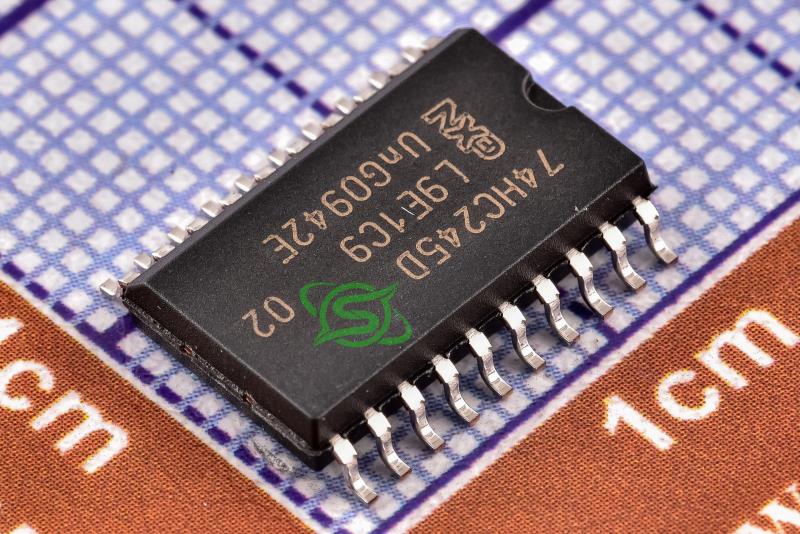 74HC245; 74HCT245 يک دستگاه CMOS Si-gate با سرعت بالا است و پين سازگار با کم مصرف Schottky TTL (LSTTL) است. 74HC245; 74HCT245 يک فرستنده گيرنده هشتگانه است که داراي خروجي هاي سازگار با گذرگاه 3 حالته غير معکوس در هر دو جهت ارسال و دريافت است. 74HC245; 74HCT245 داراي يک ورودي فعال کردن خروجي (OE) براي آبشاري آسان و يک ورودي ارسال/دريافت (DIR) براي کنترل جهت است. OE خروجي ها را کنترل مي کند تاباس ها به طور موثر ايزوله شوند. 74HC245; 74HCT245 مشابه 74HC640 است. 74HCT640 اما خروجي هاي واقعي (غير معکوس) دارد.