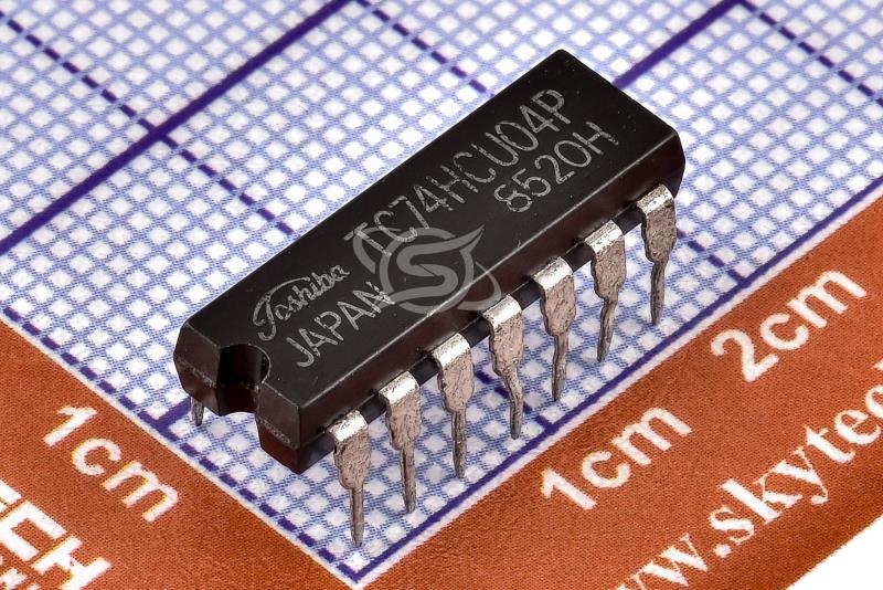 TC74HCU04P يک تراشه (IC) منطقي ديجيتال از خانواده CMOS است که توسط شرکت توشيبا (Toshiba) توليد ميشود. اين تراشه شامل 6 گيت منطقي معکوسکننده (Inverter) مجزا است.