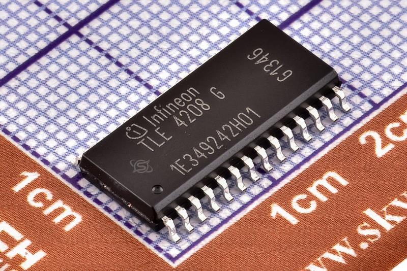 TLE4208G يک درايور چهار نيمه پل محافظت شده است که مخصوص کاربردهاي کنترل حرکت خودرو و صنعتي طراحي شده است. اين قطعه با استفاده از فناوري ولتاژ بالا دوقطبي Infineons DOPL ساخته شده است. در يک پيکربندي آبشاري حداکثر سه محرک (موتورهاي DC) را مي توان بين چهار نيم پل متصل کرد. اين چهار نيم پل به صورت 2 پل دو-نيمه پيکربندي شده اند که به صورت جداگانه عرضه و کنترل مي شوند. حالت هاي عملکرد به جلو (cw)، معکوس (ccw)، ترمز و امپدانس بالا از يک رابط استاندارد فراخواني مي شوند. پکيج استاندارد PG-DSO-28 با قدرت پيشرفته، الزامات برنامه را برآورده مي کند و باعث صرفه جويي در فضا و هزينه برد PCB مي شود. علاوه بر اين، بسته با RoHS سازگار است. علاوه بر اين، ويژگي هاي داخلي مانند تشخيص، قفل شدن بيش از حد و کم ولتاژ، حفاظت از اتصال کوتاه، حفاظت در برابر دماي بيش از حد و جريان ساکن بسيار کم در حالت آماده به کار، طيف گسترده اي از کاربردهاي خودرويي و صنعتي را باز مي کند.